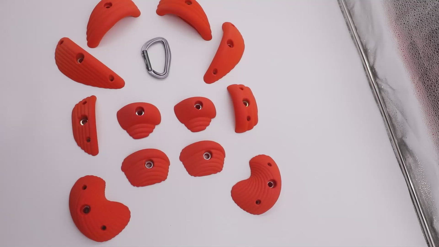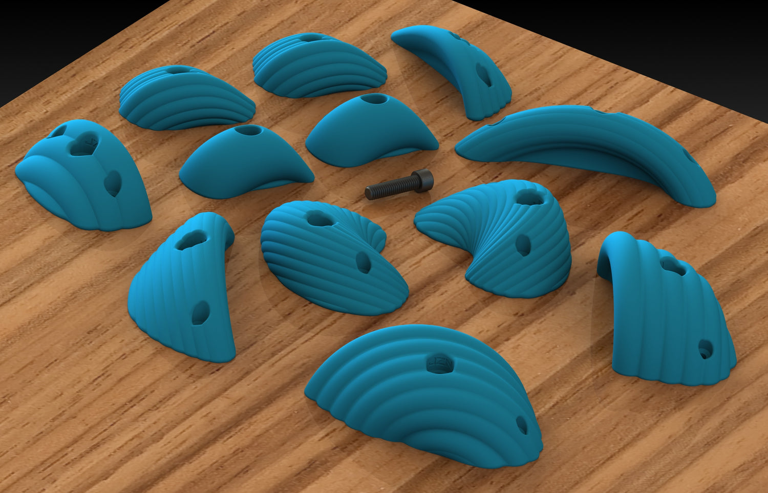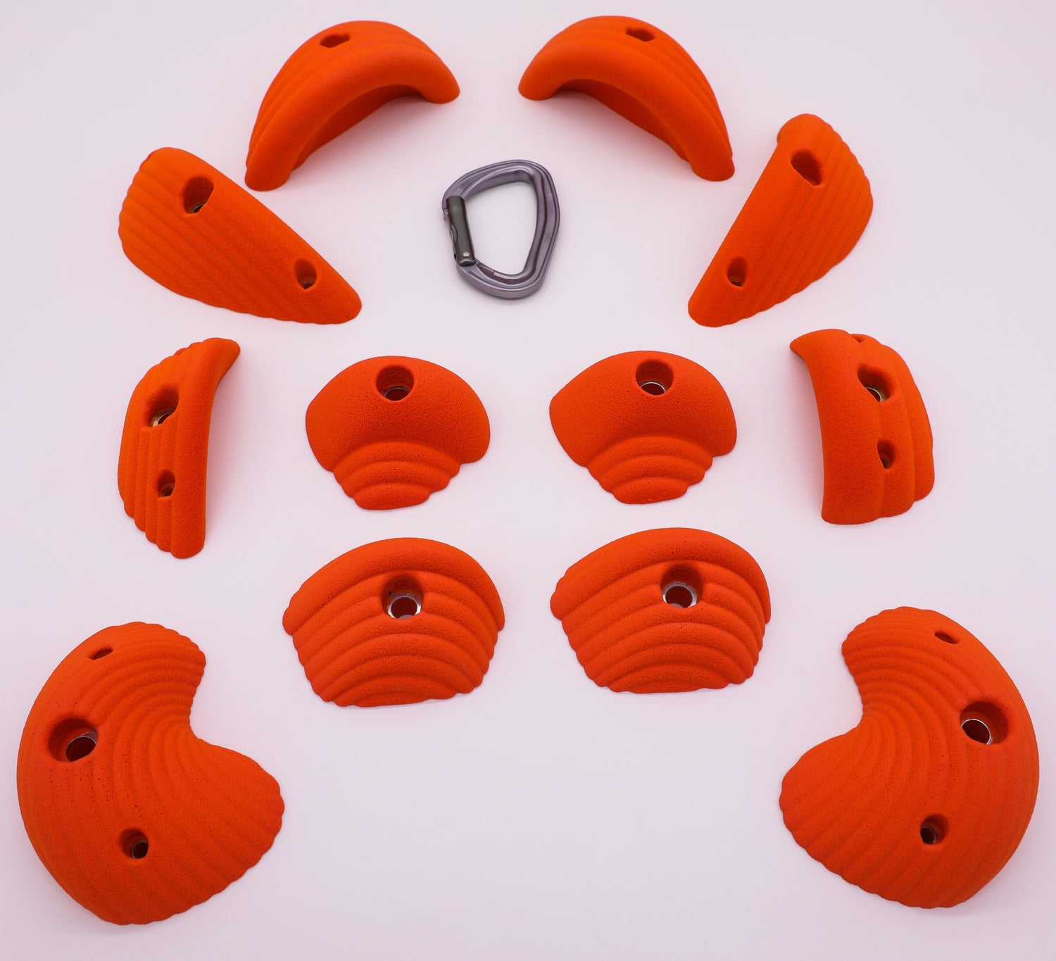 This set includes 12 BOLT ON holds meant to be fastened to your climbing wall using 3/8" Bolts and T-Nuts. Every hold is embedded with steel washers for added strength and durability!