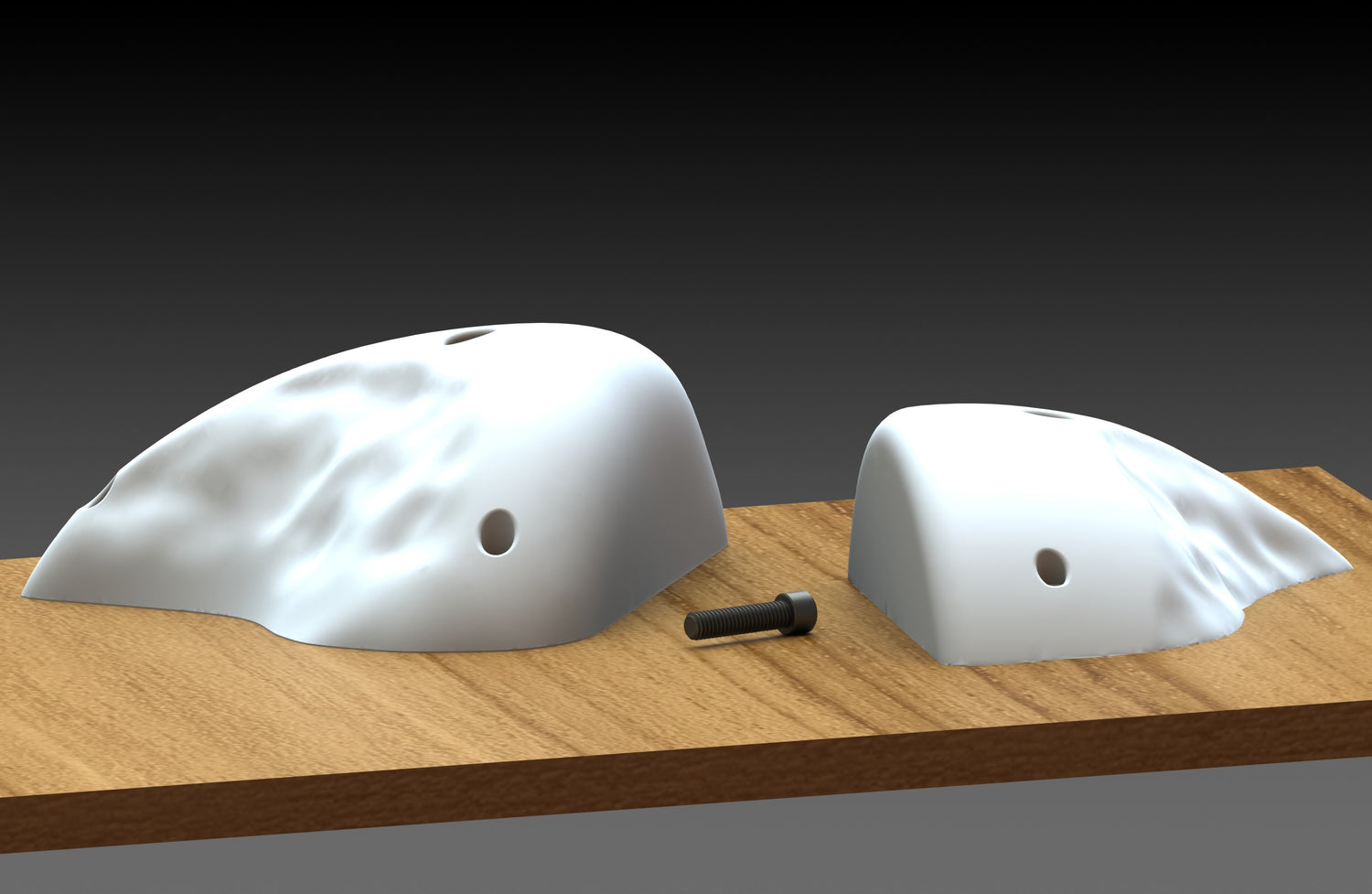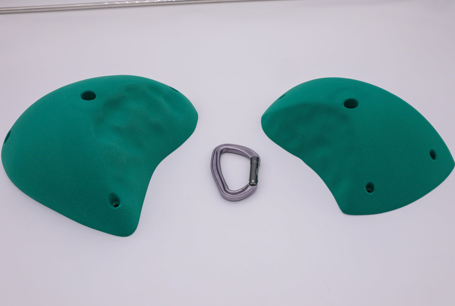 These holds were sculpted by a route-setter and they feel amazing to grab! Both holds have a large flat ledge and the small hold can be pinched depending on how it's set.