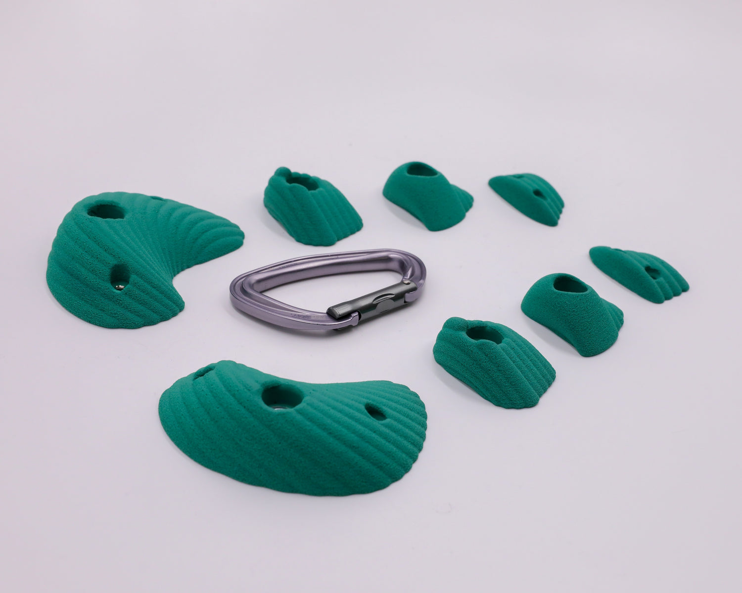 This set includes 2 small screw on holds and 6 BOLT ON holds meant to be fastened to your climbing wall using 3/8" Bolts and T-NUTS.