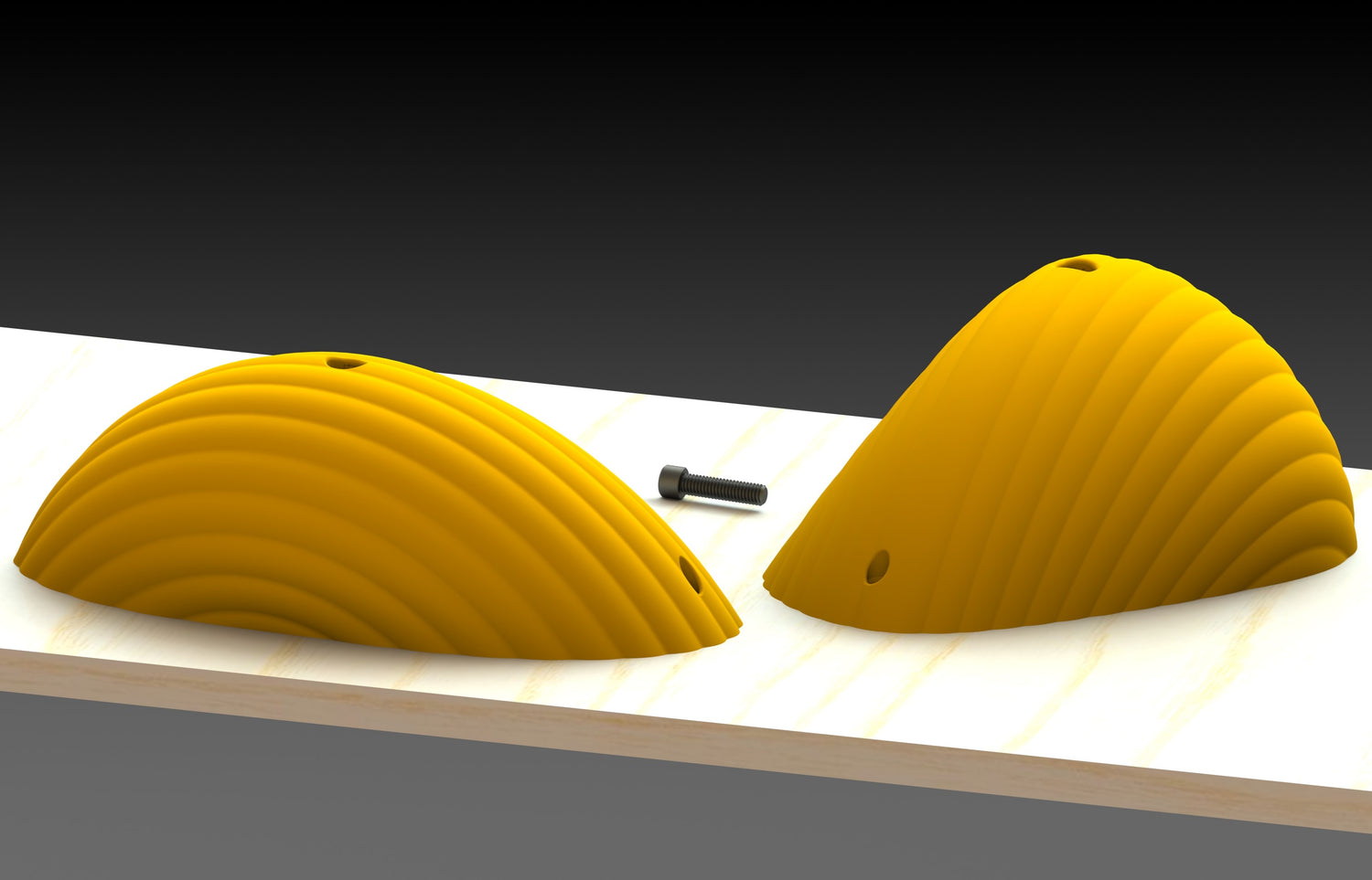 This set includes 2 BOLT ON holds meant to be fastened to your climbing wall using 3/8" Bolts and T-NUTS.